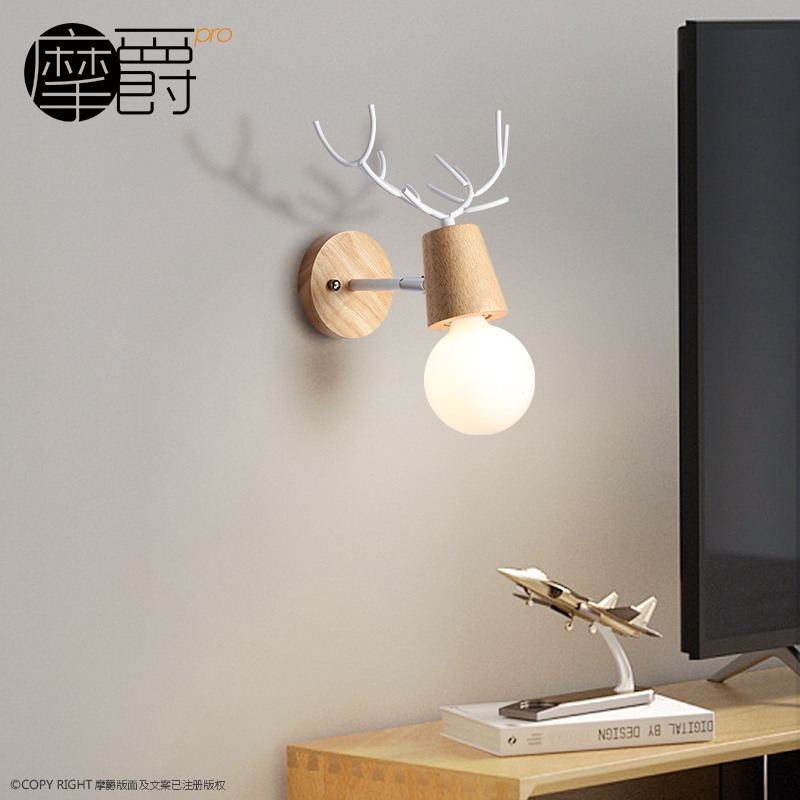 Mojue Wall Lamp Nordic Simple Kamar Tidur Bedside Anak Room Lamp Boy Gadis Lucu Kartun Antler Wood A Shopee Indonesia