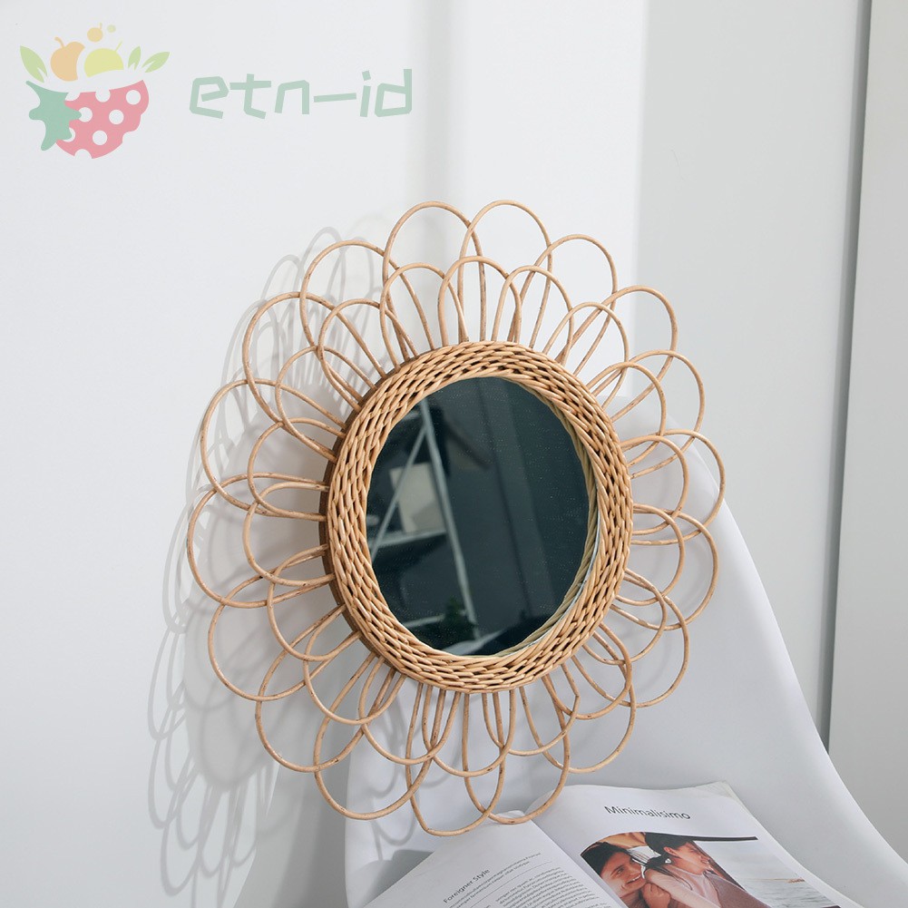 Hanging Mirror Rattan Sunflower Circular Wall Mirror Decor Boho Wicker Dressing Makeup Mirrors Shopee Indonesia